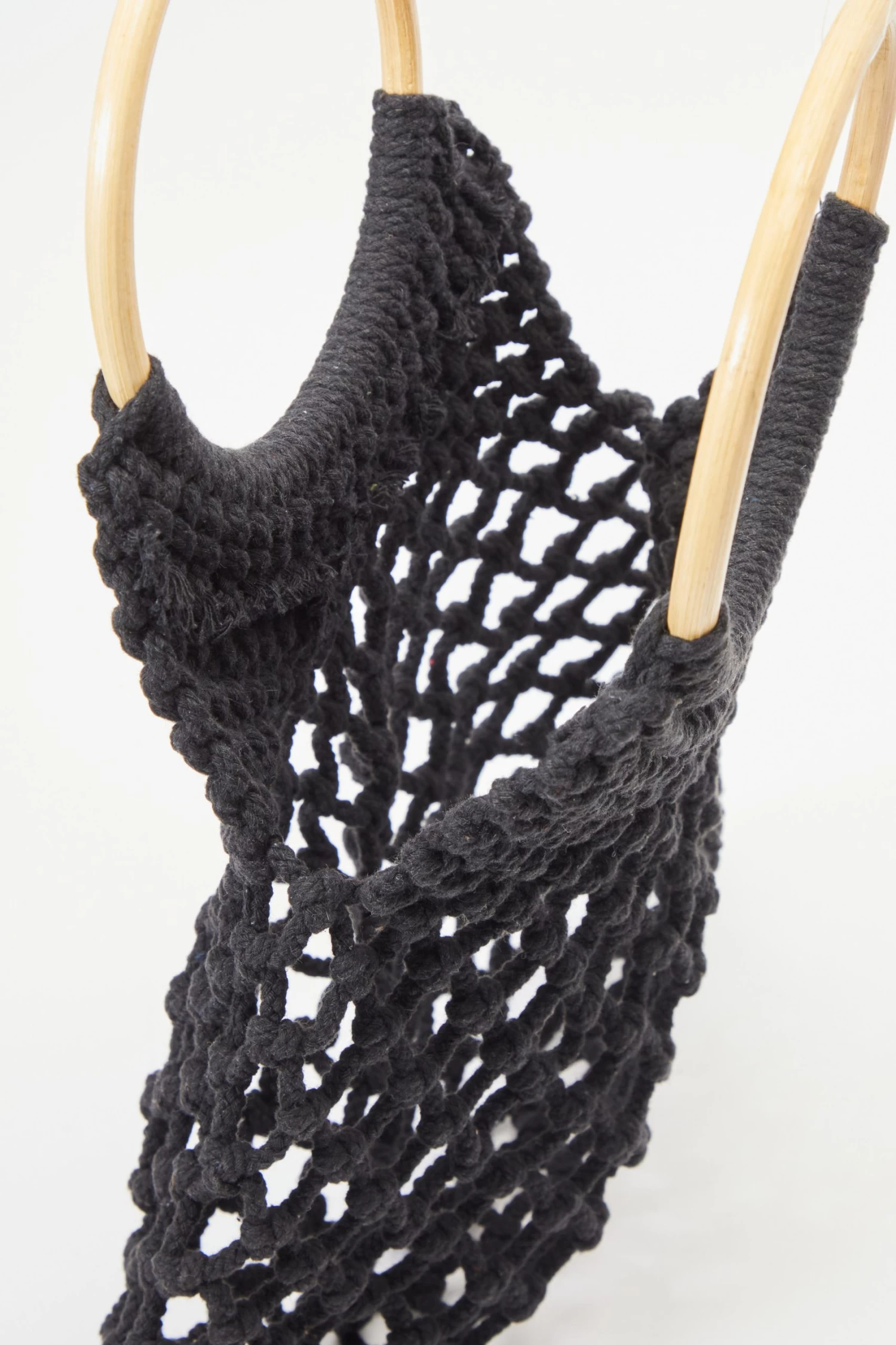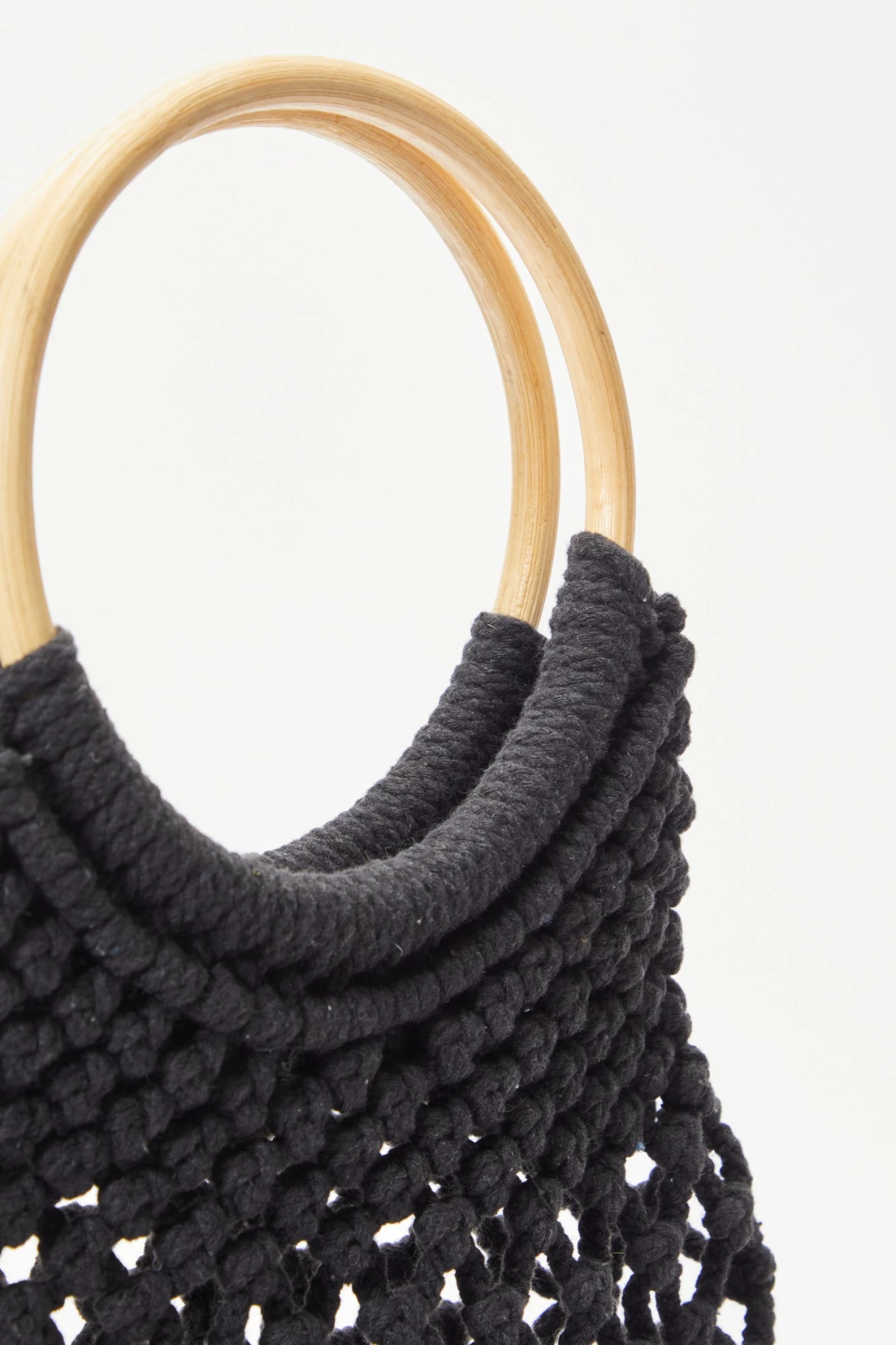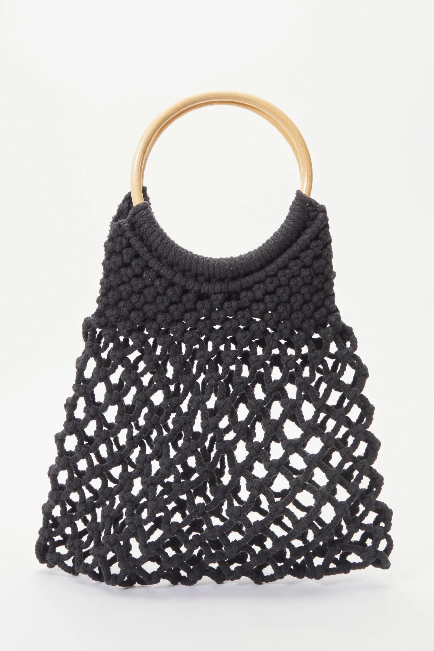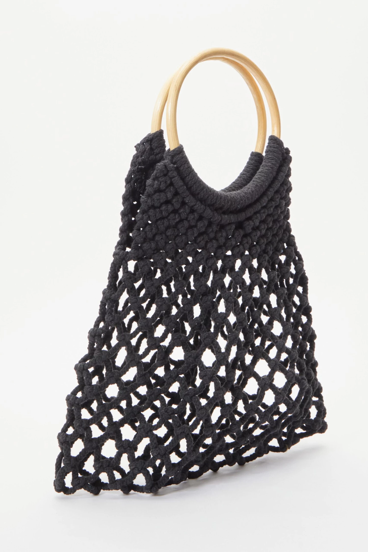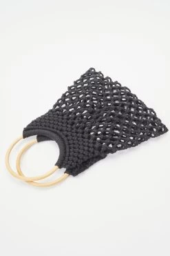 Black Crochet Bamboo Handbag