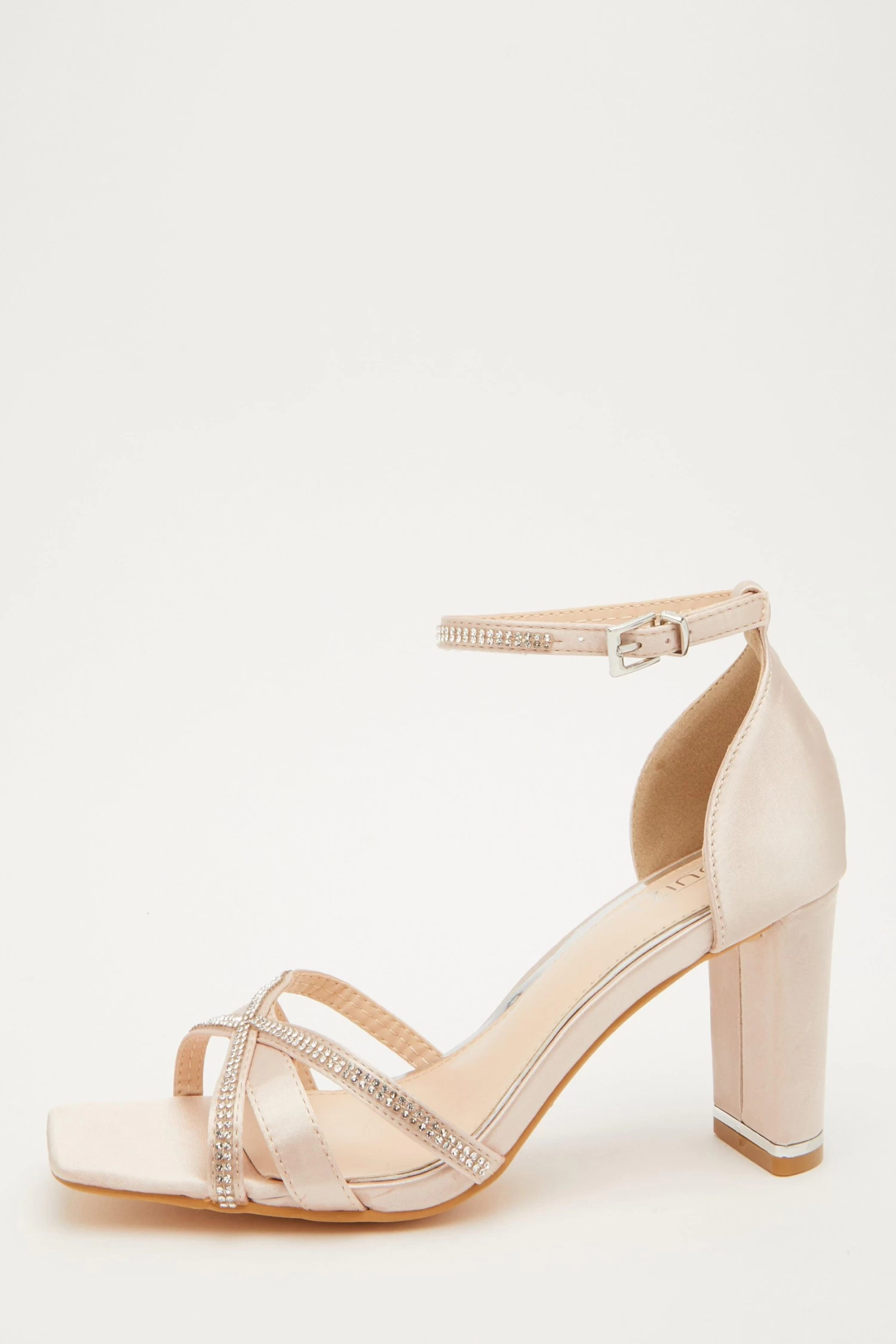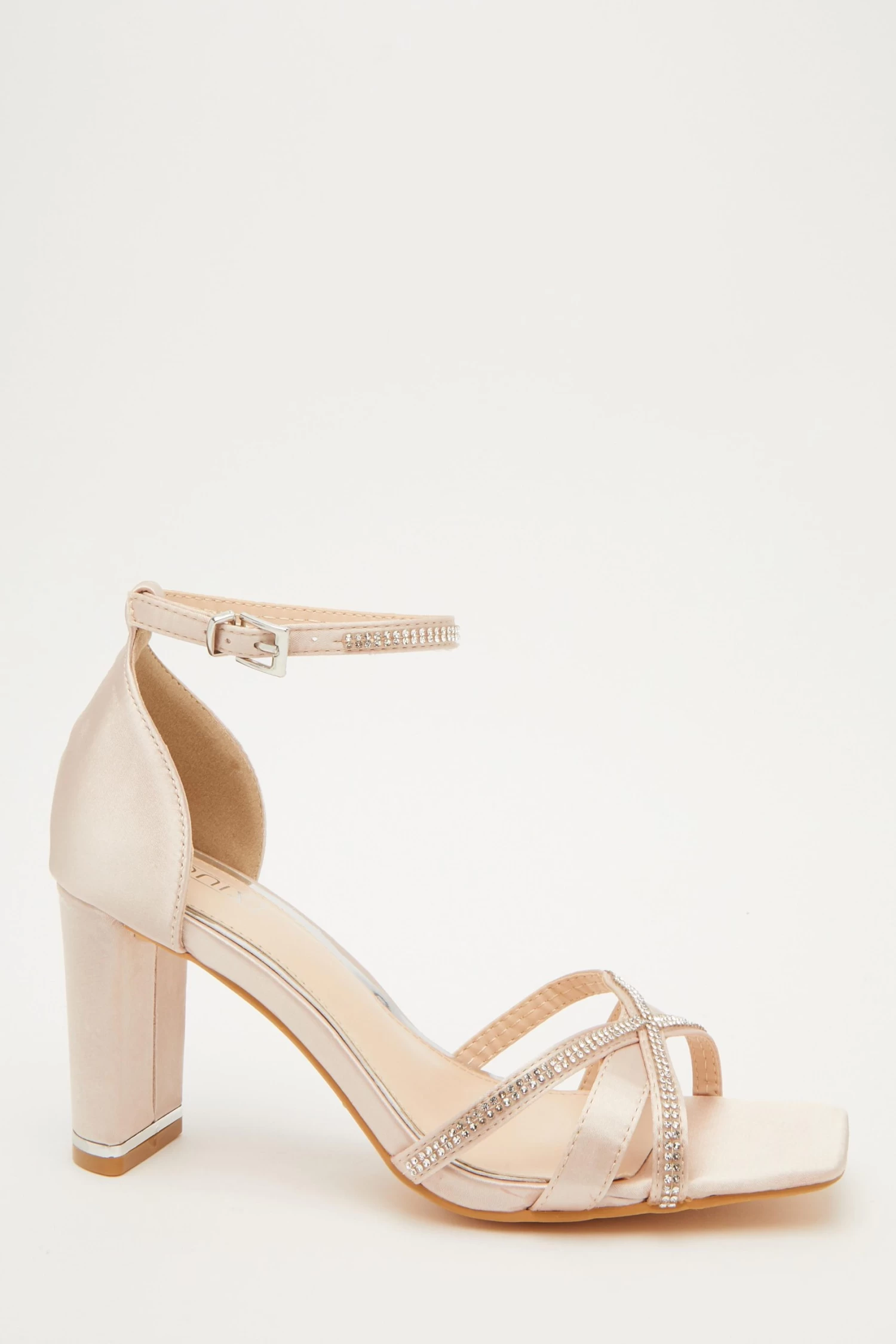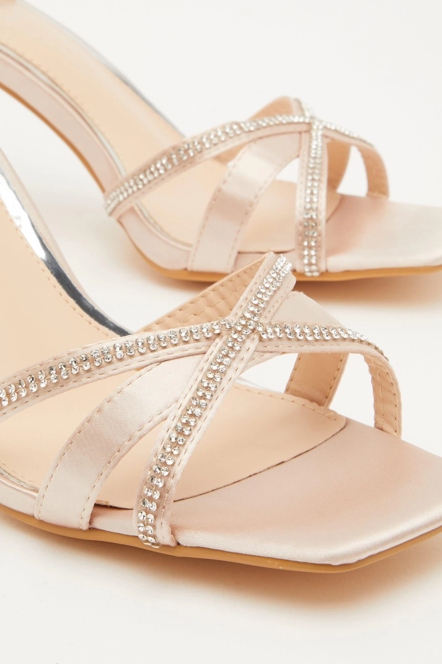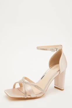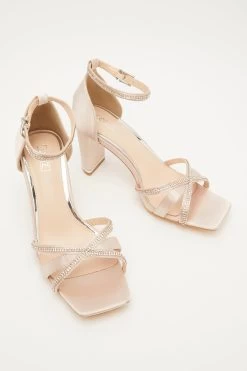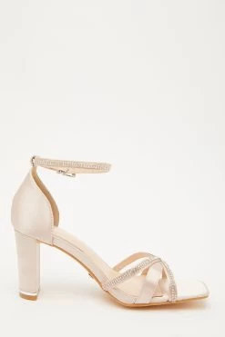 Champagne Satin Cross Strap Heeled Sandals