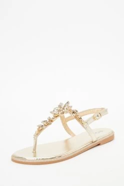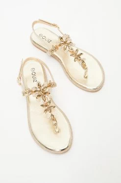 Gold Jewel T-Bar Flat Sandals